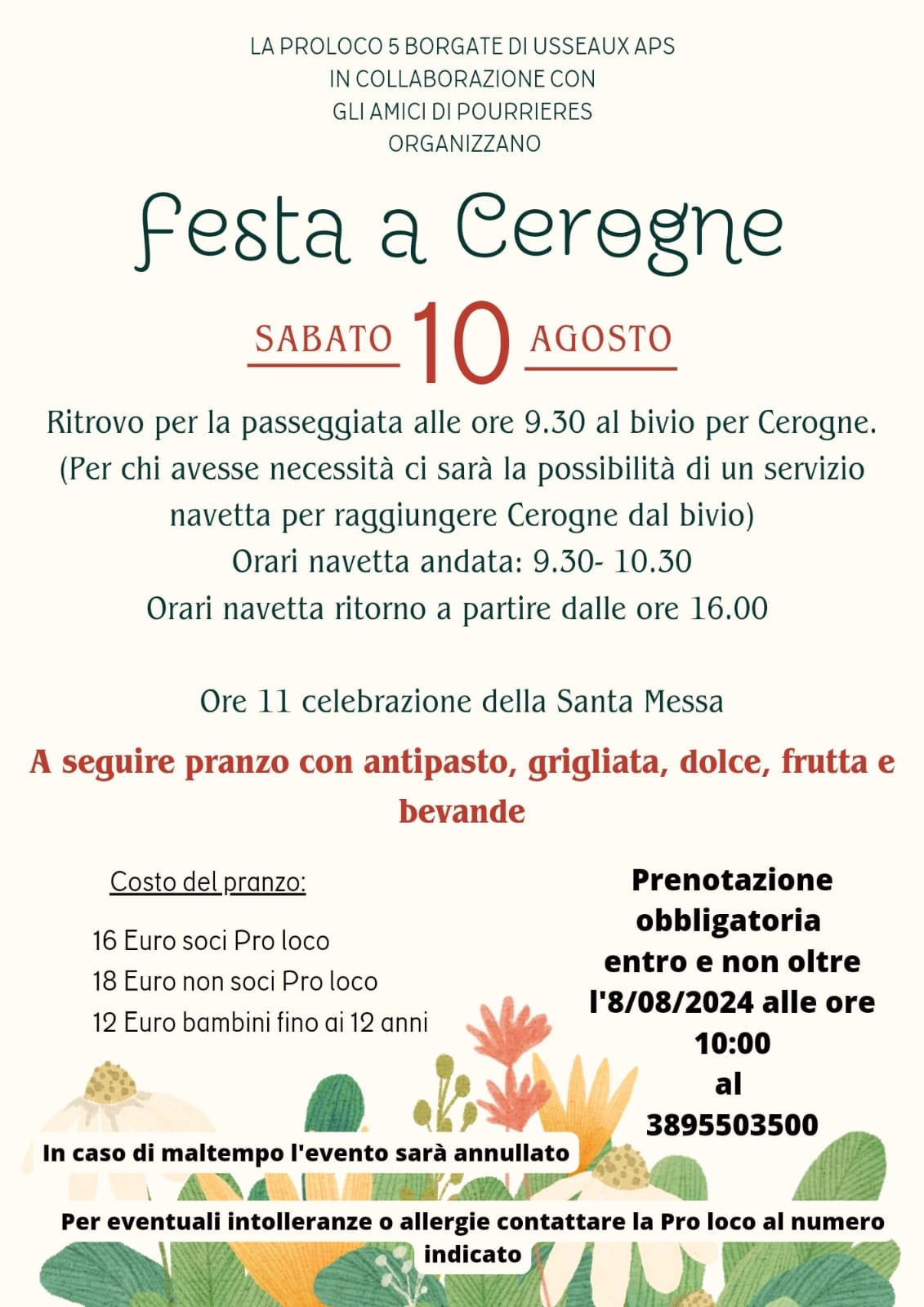 Per chi avesse necessità ci sarà la possibilità di un servizio navetta per raggiungere Cerogne dal bivio