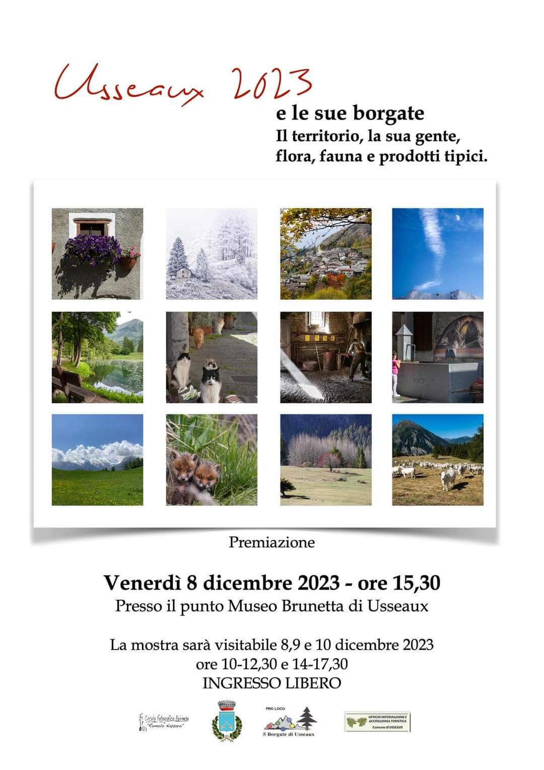 Aspettando il Natale potrete visitare i meravigliosi mercatini di natale nelle stalle delle borgate di Usseaux e Balboutet, gli atelier di pittura a Usseaux, la mostra fotografica e la premiazione del concorso fotografico l' 8 dicembre presso il punto Museo Brunetta d'Usseaux, i presepi a Pourrieres, i forni aperti a Pourrieres e Balboutet, la mostra dei loghi realizzati dai bambini della scuola di Fenestrelle, in occasione delle Mini Olimpidi di Valle che si terranno a Usseaux nel 2024 nella chiesa di Balboutet e inoltre attività al Mulino Canton nei giorni 8 e 10 dicembre e per i più piccoli laboratori a Balboutet e lo spettaccolo di favole e fiabe che si terrà a Balboutet il 10 dicembre.