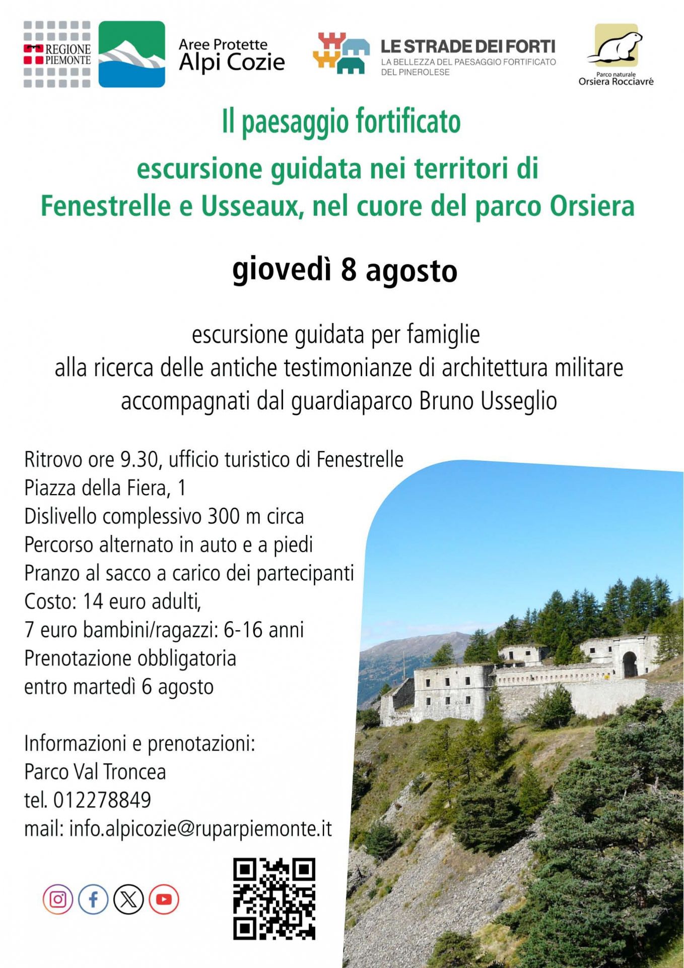 Ritrovo ore 9.00 presso l'ufficio turistico di Fenestrelle