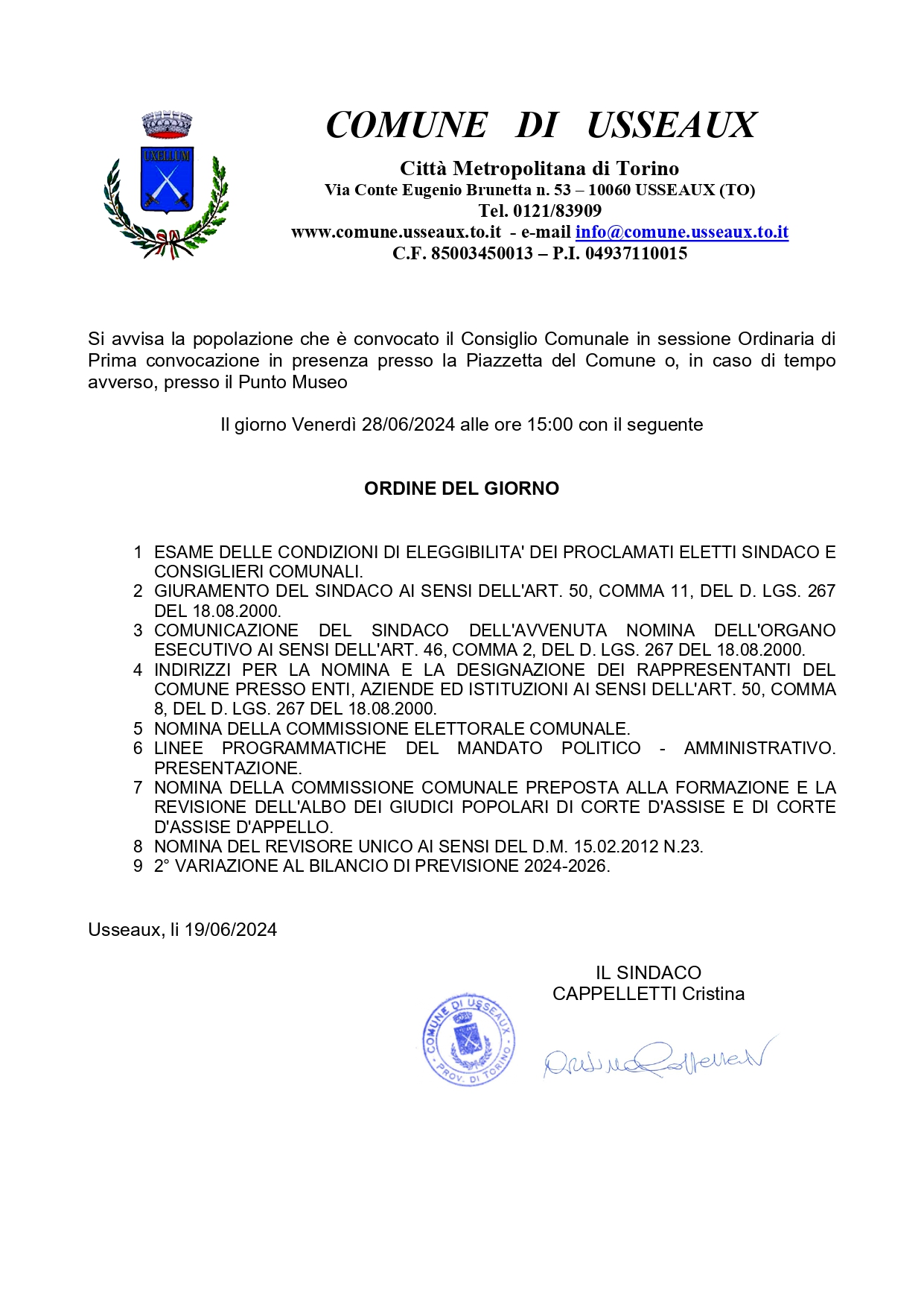 Si avvisa la popolazione che è convocato il Consiglio Comunale in sessione Ordinaria di