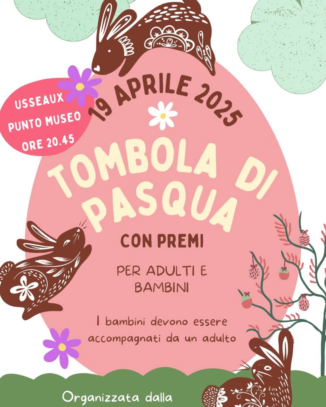 Il 19 APRILE 2025 alle ore 20.45 al Punto Museo di Usseaux arriva la grande tombola di Pasqua!!