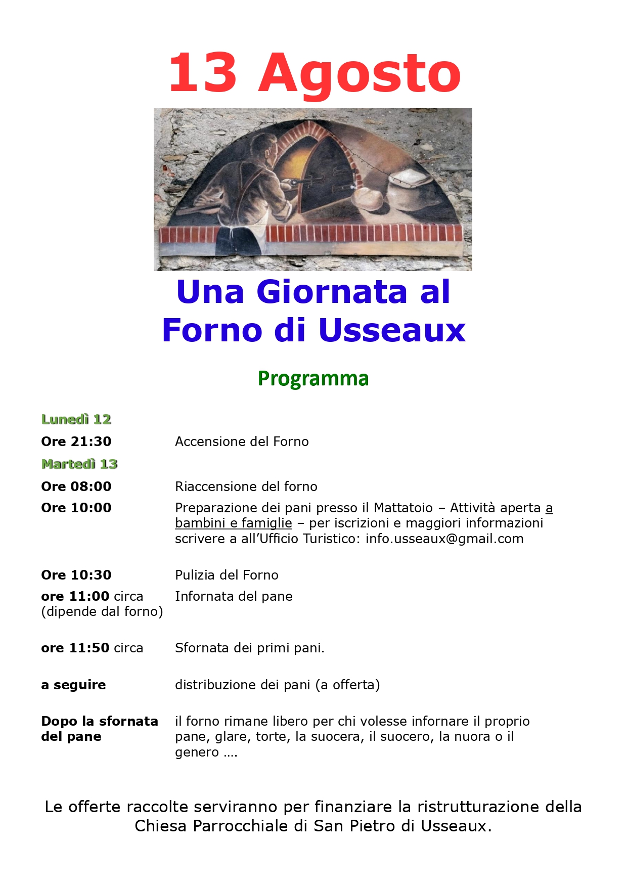 Le offerte raccolte serviranno a finanziare la ristrutturazione della Chiesa Parrocchiale di San Pietro a Usseaux