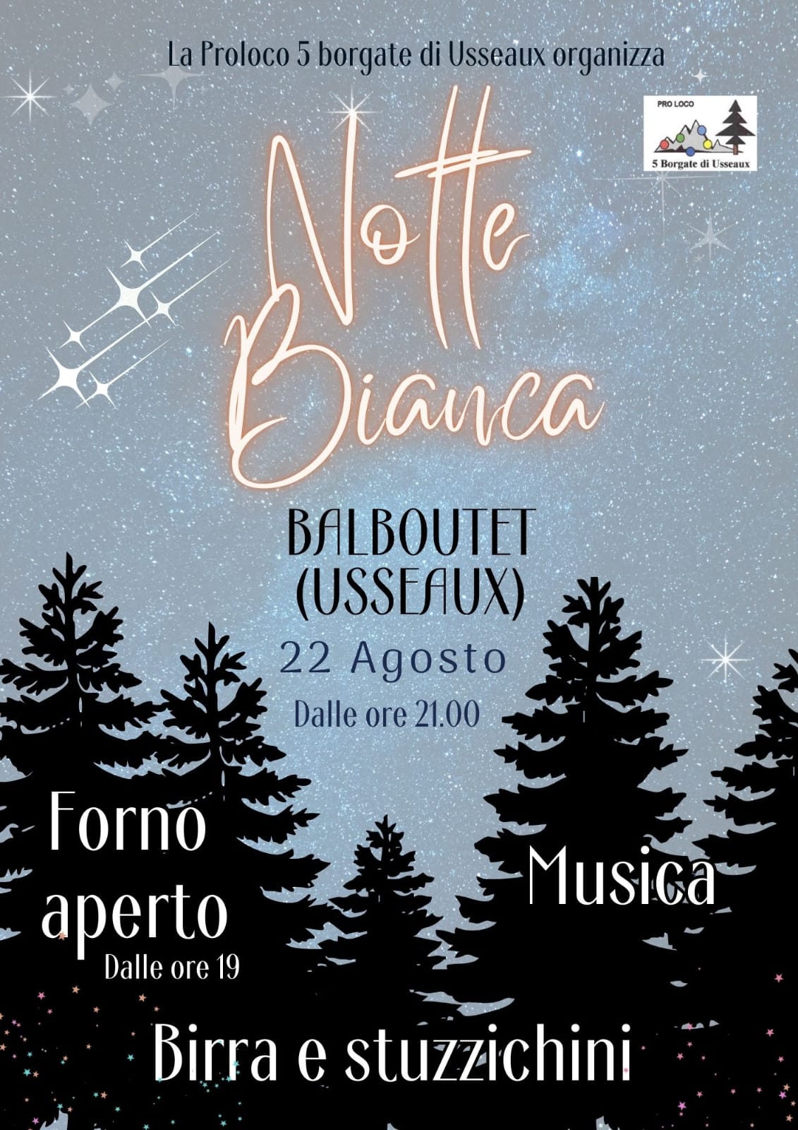 L'evento è organizzato dalla Pro Loco 5 Borgate di Usseaux APS